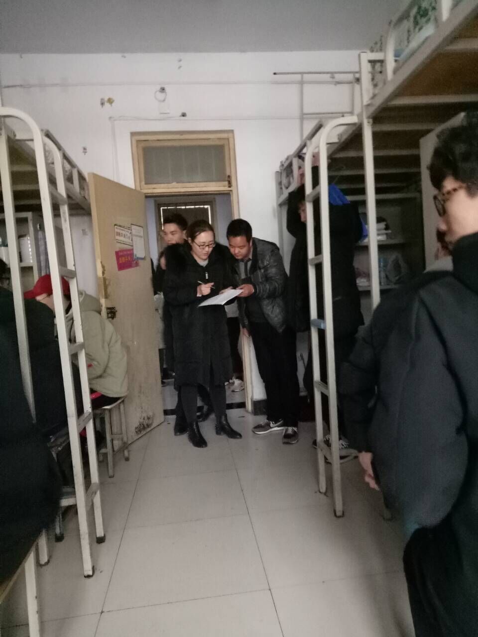 3月6日中午,信息工程系副书记李慧、团总支书记牛杰以及各个辅导员到员工宿舍检查安全卫生情况。